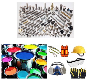 Herramientas eléctricas, hidráulicas, manuales. Equipos de Medición como Flexómetros, Vernier. Tornillería al carbón, Inox. De grado. Equipo de Seguridad, Cascos, Lentes, Chalecos . Equipos de Oficina, Fax, Teléfonos, Impresoras, Escritorios, Computadoras, Monitores, Periféricos. Materiales para Limpieza y Quimicos. Material Electrico, Empaque y Embalaje, Sellos, Pinturas, Consumibles, Accdesorios.